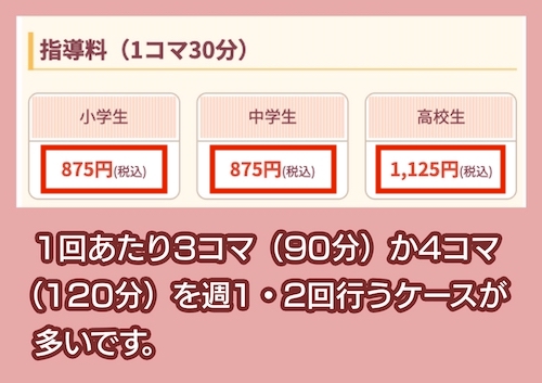 1コマ30分875円~から受講できる「家庭教師のあすなろ」や月額制のところもあります。